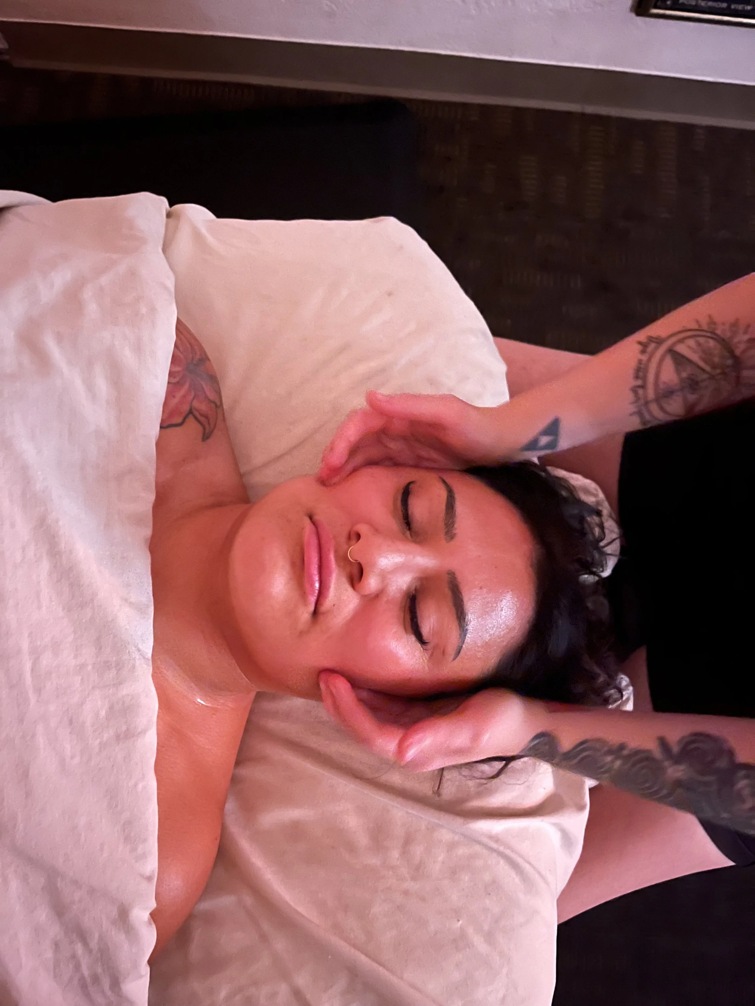 This specialized facial massage works inside the mouth to release jaw tension, reduce TMJ discomfort, and improve circulation. It also promotes lymphatic drainage, sculpting the cheekbones and enhancing skin tone for a lifted, refreshed appearance.